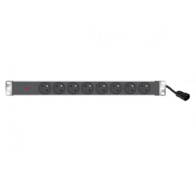 Descriptif :• Bandeau multiprise 19" composé de 6 prises françaises CEE7/5, sans interrupteur, avec voyant lumineux rouge.• Prises avec sécurité enfant.• Visserie fournie pour la fixation.• Pattes de fixation orientables de 45° à 90° sur les 4 côtés. • Possibilité de fixer le PDUen retrait de 24 mm.Ce produit est conditionné enboîte carton individuelle. Caractéristiques :• Nombre de prises : 6 prises• Type de prises : NFC61-314,CEE 7/5• Câble d'alimentation : câble HO5VV-F 3G 1,5 mm²• Longueur : 2,5 m avec ficheC14• Intensité / Tension : 16A 230VAC 50/60Hz• Puissance : 2200 W Max. sous 230V ~• Longueur : 2.50 m• Matériau : Bandeau aluminium• Couleur : Aluminium anodisé, façade noire, prises noires• Dimension hors-tout : 485 x45 x 45 mm• Ampérage : 16A• Rackable : Oui• Fixation : Vertical ou horizontal• Poids : 860 g