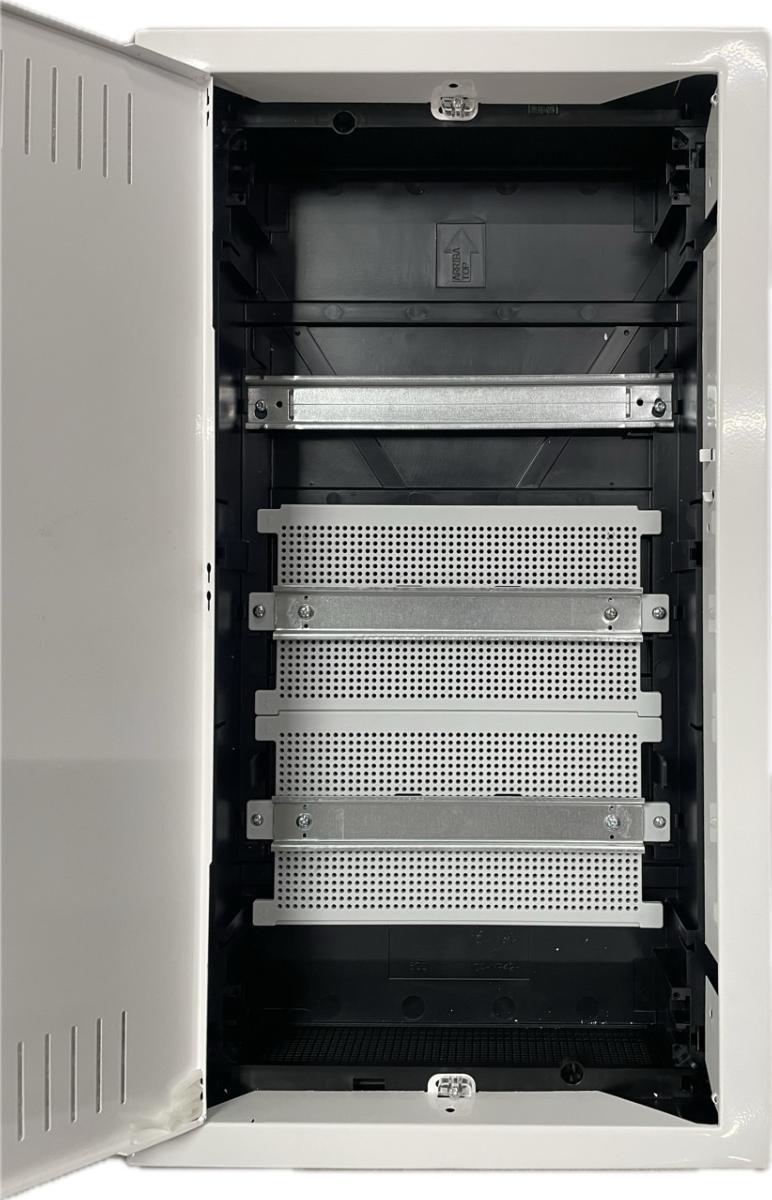 Le coffret M2EXL 600 encastrable est conçu pour la distribution centralisée des réseaux de communication dans l'habitat. Doté de 18 modules et de 8 connecteurs RJ45 Grade 3TV, il offre une solution performante pour le raccordement des signaux TV et données. Sa conception métallique robuste s’accompagne d’un cadre noir et d’une porte blanche pour une intégration esthétique. Livré prêt à l’emploi avec répartiteur TV, rail DIN, support RJ45, cordons, et prises, ce coffret assure une installation simple, efficace et complète. Compact et fonctionnel, il convient parfaitement aux besoins modernes de connectivité domestique.