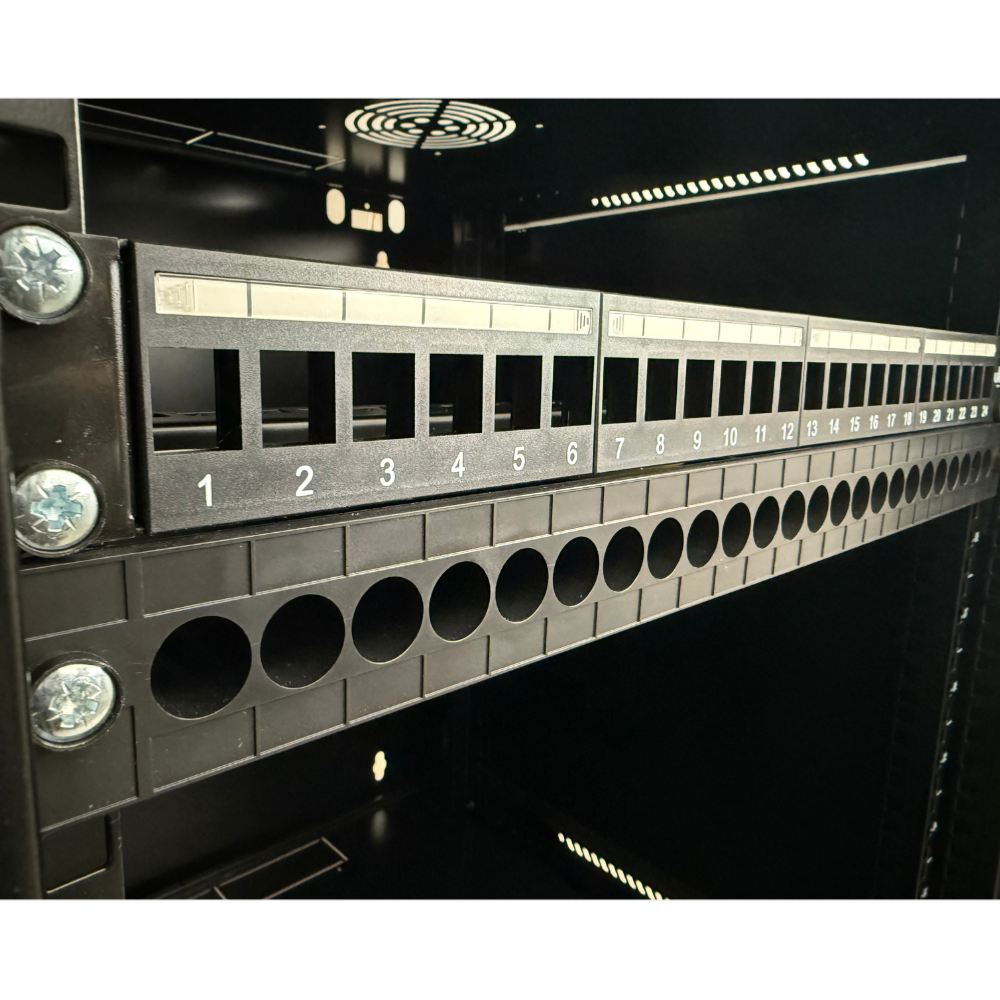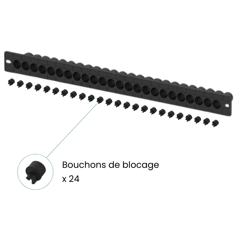 Panneau de gestion de câbles 24 ports avec bouchons de blocage