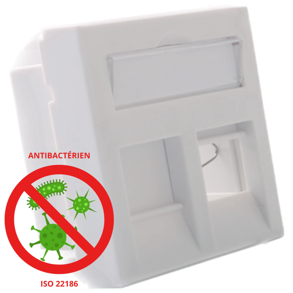 Plastron plat antibactérien 45 x 45 | 2 ports RJ45