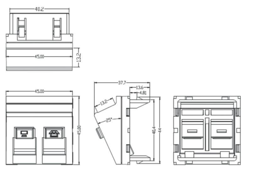 Spécificités techniques de notre Plastron RJ45 2 ports 45x45 incliné | Accroche Keystone