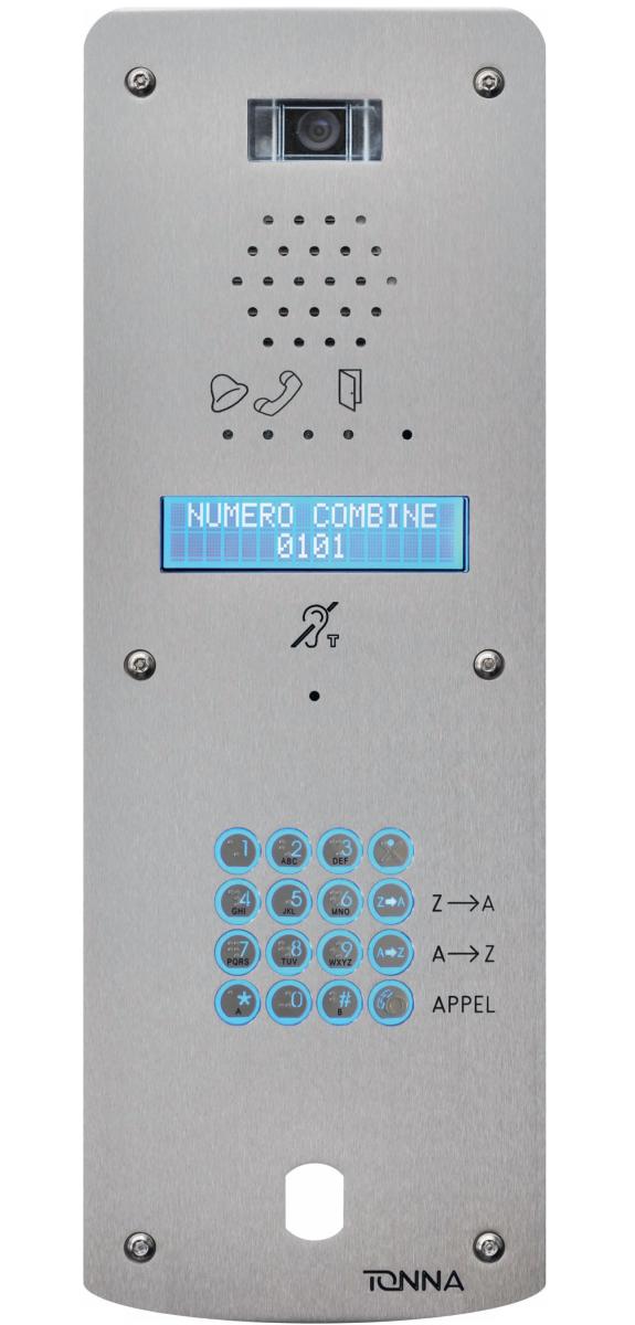 La platine de rue SERENITE de la marque Tonna est conçue pour assurer la sécurité et la communication dans les accès d’immeubles et bâtiments collectifs. Équipée d'une caméra CCD couleur grand angle et d'un système d’éclairage par LED, elle permet une excellente visibilité des visiteurs, même de nuit. Son clavier rétro-éclairé avec touches braille et son afficheur à fort contraste garantissent une utilisation facile et intuitive, notamment pour les personnes en situation de handicap. La platine gère jusqu’à 400 noms et est compatible avec les systèmes GSM. Fabriquée en inox 2,5 mm, elle est livrée avec un fond d’encastrement, des vis antivandales, des plaques Makrolon, un afficheur à défilement bleu, une carte mixte et un bloc vidéo couleur avec appel GSM. Un équipement complet, fiable et robuste pour un contrôle d’accès sécurisé.