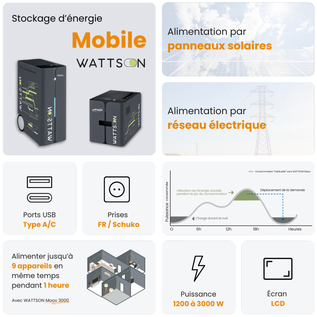 Spécificités techniques de : Station de stockage mobile 3000W - WATTSON Moov 3000