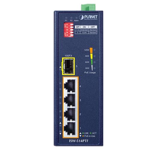 Switch industriel 4 ports 10/100TX 802.3at PoE+ et 1 port 100FX Ethernet