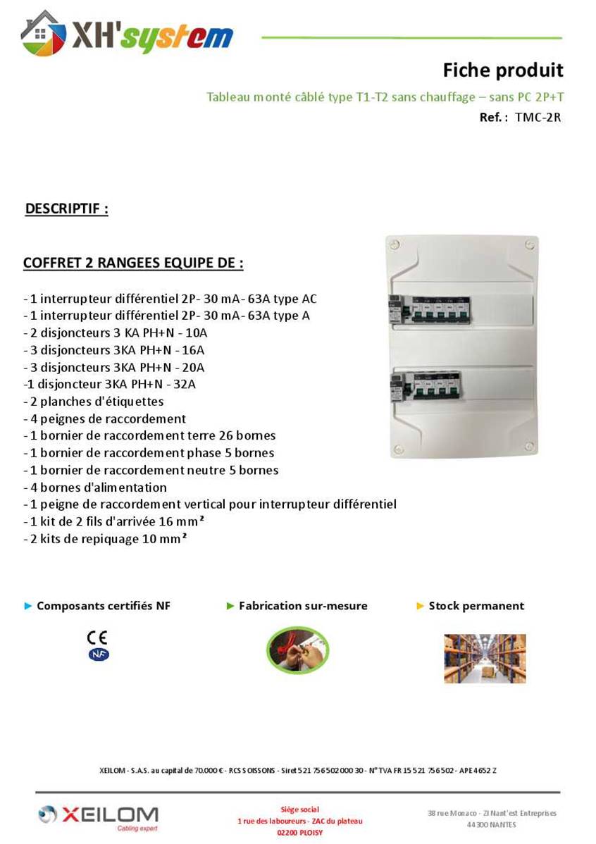 Spécificités techniques du tableau électrique monté-câblé 2 rangées